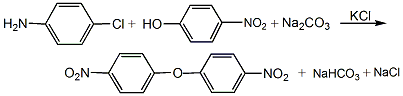 (1) condensation reaction add 515kg of solvent nitrobenzene into the stirred reactor, then add 145kg of nitrochlorobenzene, 123.5kg of p-nitrophenol, 95.7kg of sodium carbonate and 6.18kg of potassium chloride in sequence while stirring. in the reaction kettle, the temperature was raised to 210-215°c with stirring, and then the reaction was stirred and maintained at this temperature for 24 hours. after the condensation reaction is completed, cool it, pump the condensate to the distillation device, and perform vacuum distillation first. when 350 to 400l of nitrobenzene has evaporated, change to steam distillation until there is no nitrobenzene in the distillate. the residue is filtered with suction, and the filtrate is washed with water until colorless to obtain 4,4’-dinitrodiphenyl ether.