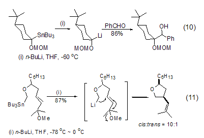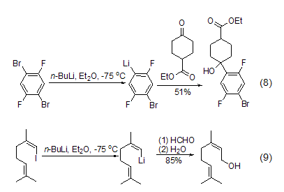 including benzyl, vinyl, many organolithium reagents, including alkynyl and lithium alkoxides, can also be obtained through li-te exchange reaction (formula 12)[12].