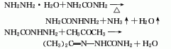 1. use hydrazine hydrate and urea as raw materials, condense them to obtain semicarbazide liquid, and then combine it with acetone to refine the finished product. mix hydrazine hydrate and urea, heat to 97-104°c, and reflux for 6-7 hours. cool to 45°c and filter to obtain semicarbazide liquid. cool the filtrate to 25°c, add acetone, naturally raise the temperature to 50-60°c, and keep it warm for 1 hour. cool to below 20°c, filter, and dry the filter cake to obtain acetone semicarbazone. the weight ingredient ratio is: hydrazine hydrate (40%): urea: acetone = 1:0.67:0.56. the yield is 90%. as an intermediate, it appears as white powder with a melting point of 185-189°c. raw material consumption quota: hydrazine hydrate (40%) 300kg/t, urea (industrial product) 870kg/t, acetone (industrial product) 720kg/t.