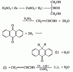 it is obtained by reacting anthraquinone and glycerol through the following steps. (1) anthraquinone is reduced with iron powder in the presence of copper sulfate to form hydroxyanthrone. (2) glycerol loses water and turns into acrolein under the action of concentrated sulfuric acid. (3) in the presence of sulfuric acid, hydroxyanthraquinone and acrolein add together and lose a molecule of water to form a new ring. (4) then use sulfuric acid to oxidize to benzanthrone. raw material consumption quota: anthraquinone (98%) 900kg/t, glycerol 600kg/t, zinc powder 440kg/t, copper sulfate (96%) 205kg/t, sulfuric acid (100%) 5000kg/t.