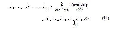 hexahydropyridine thiphilic propertiesin the knoevenagel sulfoxide-sulfinic acid rearrangement reaction, hexahydropyridine not only acts as a catalyst, but also can cleave the s-o bond (formula 11)[11].