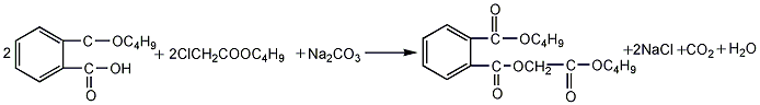(3 ) put the monobutyl phthalate, butyl chloroacetate and sodium carbonate prepared above into the reaction kettle in a molar ratio of 1:1.1:0.6, and raise the temperature to 150°c with stirring to perform condensation. the crude product is washed with water at 60-70°c, and then washed with 10% soda ash. after washing with water, add thin film for evaporation. then use activated carbon with a mass of about 2% of the mass of butyl ester to decolorize at 80-90°c, and finally press filter to obtain the finished product.