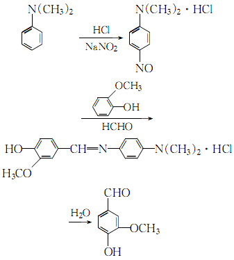 2.n,n-dimethylaniline is processed in the presence of30% hydrochloric acid and sodium nitrite nitrosation reaction, the obtained nitroso compound is condensed with o-methoxyphenol and formaldehyde, and then hydrolyzed to obtain crude vanillin: