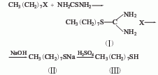 it is derived from the reaction of octyl bromide and sodium hydrosulfide in the presence of sulfuric acid. octyl mercaptan can also be obtained by condensing octyl bromide and thiourea first, and then hydrolyzing it.