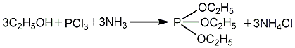 2. equipped with a closed stirrer and a high-efficiency reflux condenser in a 3-liter three-necked flask with a 500-ml dropping funnel, put 447 grams (477 ml, 3 mol) of absolute ethanol and 1 liter of dry petroleum ether (boiling point 40-60°c) into a 3-liter three-neck flask. ) freshly steamed diethylaniline solution. put 400 ml of dry petroleum ether and 137.5 g (87.5 ml, 1 mol) of freshly distilled phosphorus trichloride solution into the dropping funnel. the flask was cooled in a cold water bath. under vigorous stirring, add phosphorus trichloride solution dropwise, and the mixture can be gently refluxed at the dropping speed. it takes about 30 minutes to finish dripping. after the addition is complete, continue heating and stirring to allow gentle reflux for 1 hour. cool the suspension containing a large amount of diethylaniline hydrochloride precipitate, use a glass core funnel to suction and filter the dry amine salt filter cake on the water pump, and wash with 5 parts of 100 ml dry petroleum ether (boiling point 40-60°c). combine the filtrate and washing liquid, and use a 75 cm long pine needle-shaped fractionating column on a water bath for distillation and concentration. the residue was transferred to a pear-shaped flask and distilled under reduced pressure with a water pump using a 75 cm long pine needle-shaped fractionating column. after steaming out a small amount of the front fraction, collect the product at 57-58℃/16mm (51-52℃/13mm, 43-44℃/10mm). the yield of the colorless product is 138g (83%)