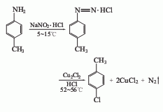 add industrial hydrochloric acid and p-methylaniline into the reaction kettle. the temperature in the kettle will drop to 0°c, so that p-methylaniline will generate hydrochloride. stir and add methylaniline. sodium nitrate solution is used to cause diazotization reaction. the temperature is maintained at 0-5°c for about 30 minutes. after the diazotization reaction is completed, add it to the stirring cuprous chloride solution and gradually warm it to room temperature. stir at room temperature for 2.5 to 3 hours, and then heat to 60°c. the reactant gradually decomposes into nitrogen and p-chlorotoluene. then it is distilled with water vapor. the mixture of p-chlorotoluene and water is collected, separated into layers, and the organic layer is washed with acid. then wash with water, dry, and distill. the 158-162°c fraction is collected as p-chlorotoluene, with a yield of about 70% to 79%.