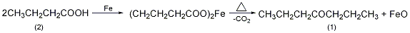 contains formaldehyde. in the reaction bottle of the reflux condenser, add 123g (2.2mol) of reduced iron powder and 370ml of n-butyric acid (2), stir and heat to reflux for 5 hours. change to a distillation device, heat and distill under nitrogen protection, and stop supplying nitrogen at a later stage. intense heat distills out everything that can be distilled out. the crude product was washed with 10% sodium hydroxide solution and water in sequence, dried over anhydrous sodium sulfate, and after rotation and concentration, the residue was rectified and the fractions at 142-144°c were collected to obtain 157-171g of 4-heptanone (1). the rate is 69%~75%. [2]