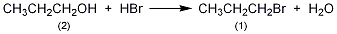 add 48% hydrogen to the reaction bottle 500g bromic acid, cool in water bath, slowly add 150g (82ml) concentrated sulfuric acid while stirring, then add 144g (2.4mol) n-propanol (2), slowly heat, and add 65ml concentrated sulfuric acid dropwise from the dropping funnel, while evaporating the resulting 1-bromopropane is produced. the connecting tube extends into the receiving bottle under the water surface, and the receiving bottle is cooled with ice water. stop the reaction when no bromine-free propane evaporates. the crude propane bromide in the distillate was separated, washed successively with water, 5% sodium carbonate solution, water, and dried over anhydrous calcium chloride. heating and distilling in a water bath, collecting fractions at 70-72°c to obtain 255g of 1-bromopropane (1), with a yield of 86%. note: ① 1-bromopropane can also be prepared by reacting sodium bromide, sulfuric acid and propanol. [25]