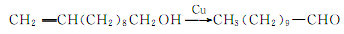 2. from undecylenic acid after hydrogenation of methyl ester, undecanol is catalytically dehydrogenated into aldehyde.