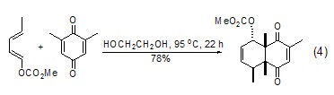 when diene and dienophile undergo diels-alder reaction, ethylene glycol is more superior as a solvent than benzene, mecn, dmso, meoh, etc., and the reaction rate is higher (formula 4)[8, 9].