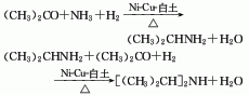 1. acetone catalytic hydrogenation and amination method. after acetone is vaporized, it is mixed with a certain amount of ammonia and hydrogen, and the catalytic reaction is continuously carried out under normal pressure and appropriate temperature. the catalyst is ni-cu-clay, and the reaction the product is distilled and fractionated to obtain the finished product. raw material consumption quota: acetone 1389kg/t, liquid ammonia 376kg/t, hydrogen (99%) 1023m3.