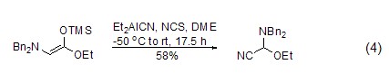 strong> ncs can also be used as an oxidizing agent to convert unsaturated bonds into corresponding saturated bonds. for example, enol ester undergoes cyanation reaction under the oxidation of ncs to generate saturated cyanide amine (formula 4)[7].