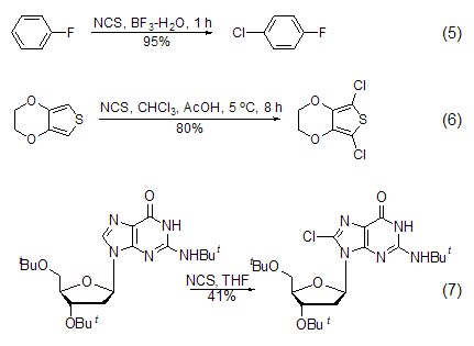 chlorine of aromatic compounds chlorination ncs can chlorine aromatic compounds (formula 5) [8], thiophene compounds (formula 6) [9] and nitrogen heterocyclic compounds (formula 7)[10,11].