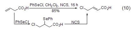 reaction with alkenes under the action of a catalyst such as phsecl, ncs can also chlorinate olefins. after the reaction undergoes electrophilic addition to obtain chloride, the catalyst is restored to obtain the final product (formula 10)[14].