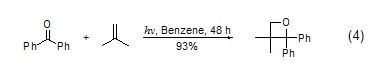 under light conditions cycloaddition reactionisobutene can be widely used to perform cycloaddition with enone, and weakly protonated isobutene often undergoes stereoselective cycloaddition. cyclohexenone, cyclopentenone and enones with functional groups can all undergo cycloaddition with isobutylene. the paterno-buchi cycloaddition of isobutylene can produce various alkylene oxides (formula 4)[5].