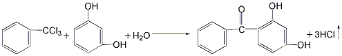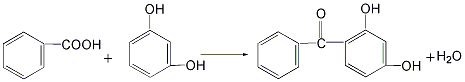 3. using benzoic acid and resorcinol as raw materials, combine benzoic acid and resorcinol the diphenol and the catalyst zinc oxide are put into the reaction kettle, and the reaction is carried out by heating under stirring. phosphorus trichloride or phosphoric acid is added to the reaction to increase the dehydration reaction speed.