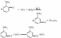 meta-nitrochlorobenzene is reduced with iron powder to obtain m-chloroaniline.after distillation, it is salted out with hydrochloric acid, filtered, and dried to obtain the finished product. the diazo value of dry industrial products is ≥95%. raw material consumption quota: m-chloroaniline (98%) 840kg/t, hydrochloric acid (31%) 882kg/t.
