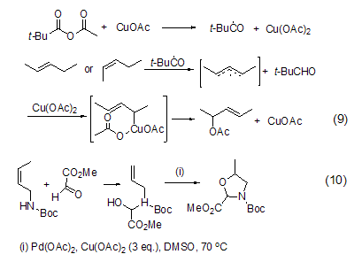 allyl oxidation reactions, such as n-boc-allylamine intramolecular cyclization reaction (formula 10), can also be achieved under the combined action of catalytic amounts of palladium acetate and excess copper acetate. [7].