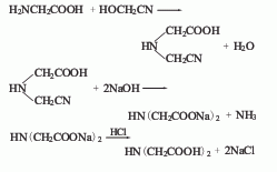 1. sodium chloroacetate method: sodium chloroacetate is prepared from chloroacetic acid, and then reacts with hydrazine hydrate to generate hydrazine diacetic acid, and finally iminoacetic acid is prepared under the action of sodium nitrite.