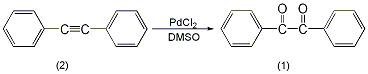 in the installation add 178 mg (1 mmol) of diphenyl acetylene (2), 10 ml of dry dmso, and 18 mg of palladium chloride (0.1 mmol) to a reaction flask in a magnetic stirrer and reflux condenser (installed with a calcium chloride drying tube). slowly heat to 140°c and stir for 4 hours. after cooling, add 30 ml of water to dilute, and extract with ether three times, 30 ml each time. the organic layers were combined, washed with water and saturated brine in sequence, and dried over anhydrous sodium sulfate. the solvent was evaporated and purified through a silica gel column (benzene:hexane = 1:1) to obtain 205 mg of compound (1) with a yield of 98%. [3]