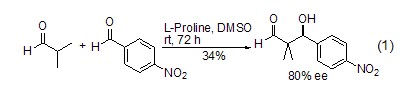 asymmetric catalysis when proline is used as a chiral catalyst, carbonyl compounds can undergo an asymmetric michael reaction, and the product is β-hydroxyaldehyde (or ketone) (formula 1)[2~4].