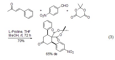 l-proline can also be used catalytic asymmetric diels-alder reaction (formula 3)[7].