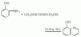 2.mix o-aminophenol, o-nitrophenol, glycerin, and glacial acetic acid, add concentrated sulfuric acid in portions, and heat the mixture until it begins to boil. then reflux on an oil bath, and remove unreacted o-nitrophenol by steam distillation. cool, neutralize with sodium hydroxide solution, and recover by steam distillation to obtain 8-hydroxyquinoline.