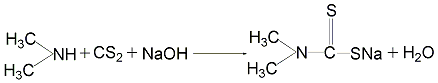 (1) preparation of sodium dimethyldithiocarbamate. first, prepare the solid alkali into a 15% aqueous solution in the reaction kettle, and then add carbon disulfide and dimethylamine, heat slightly while stirring, keep the temperature at 40-45°c, and conduct condensation reaction for more than 1 hour. when the ph value of the system reaches 9 to 10, the resulting light yellow-green or amber liquid is sodium dimethyldithiocarbamate.