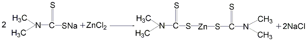 (2) preparation of accelerator pz: add zinc sulfate or zinc chloride to the sodium dimethyldithiocarbamate prepared above, and control the temperature below 30°c while stirring , carry out metathesis reaction. the reaction product is filtered, dried, crushed and screened to obtain the finished product.