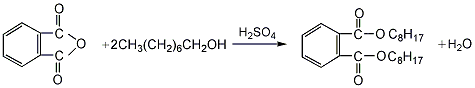 1. produced by esterification of phthalic anhydride and n-octanol under normal pressure. add phthalic anhydride, n-octanol, benzene, and sulfuric acid to the reaction kettle, and slowly heat up while stirring until benzene and water begin to steam out. after the benzene-water mixture is condensed by the condenser, the water is separated by the benzene-water separator, and the benzene is returned to the kettle to continue evaporation and water. when no water is brought out, the esterification reaction is completed, and then the benzene is recovered, cooled, washed with alkali, washed with water, dried, and distilled under reduced pressure to obtain the finished product.