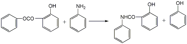 (1) use salicylic acid and aniline as raw materials 1. use toluene or carbon tetrachloride as the solvent for salicylic acid and aniline, and gradually add trichlorophosphine (salicylic acid: aniline: trichlorophosphine = 3:3:1, molar ratio). after the addition is completed, the temperature is raised and the boiling reaction is carried out until the hydrogen chloride gas no longer escapes. stop reacting. steam off the solventrecycling and recycling, the product is washed with cold water, filtered and dried to obtain the finished product rate. 2. add 56g of newly distilled aniline into the three-necked bottle. heat to 100-120°c with stirring to melt all the salicylic acid, then cool to 90-100°c, and add 20g of phosphorus trichloride dropwise for reaction. the hydrogen chloride generated by the reaction is introduced into the absorber and absorbed with water or alkali solution. after the dropwise addition is completed, raise the temperature to 140-150°c with stirring, and continue the reaction for 3 hours. then put the reactant into cold water, and white crystals will precipitate. after filtering and drying, the finished product is obtained.