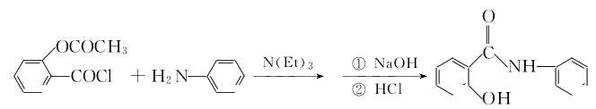 add 1.4ml (0..01) triethylamine, 0.9g (0.01mol) aniline and 20ml dried acetone, stir evenly, then slowly add 2-acetoxybenzoyl chloride solution dropwise while cooling in an ice water bath, stir at room temperature for several hours after the dropwise addition. evaporate the acetone under reduced pressure, add an appropriate amount of water, stir for a few minutes, let it stand, filter with suction, and wash with water. hydrolyze the solid with 2 mol/l sodium hydroxide solution at room temperature for 4 hours, filter out the insoluble matter, and adjust the ph value of the filtrate to 4 with 3 mol/l hydrochloric acid. filter with suction, wash with water, and recrystallize the solid with ethanol-water to obtain 2.2g of white granular solid, yield 80.6