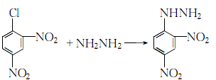 3. heat 2,4-dinitrochlorobenzene to 70-80°c with industrial ethanol to dissolve, add activated carbon, heat to boiling with stirring, filter while hot, and then cool to 70-80°c. slowly add 50% hydrazine hydrate to the filtrate at ℃, stirring while adding. when 1/5 is added, the reaction becomes intense and reflux begins. after adding hydrazine hydrate, keep it warm and reflux for 1.5 to 2 hours, and stir every 20 to 30 minutes: