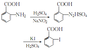 1. obtained from diazotization and replacement of anthranilic acid. diazotize anthranilic acid with sodium nitrite in the presence of sulfuric acid, control the temperature below 10°c, filter the diazo liquid, add a mixture of potassium iodide and sulfuric acid, stir for 10 minutes after addition, and boil. filter, wash with sodium thiosulfate solution, and then recrystallize with water to obtain the finished product. the process reaction formula is: