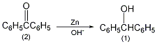 in a 1l reaction bottle equipped with a stirrer, thermometer and reflux condenser, add 50g of benzophenone (2) (0.275mopl), 500ml (95%) of ethanol, 50g of sodium hydroxide and 50g of zinc powder (0.76mol ), stir vigorously, and slowly raise the temperature to about 70°c. after 3 hours, lower the temperature, filter, and wash the filter residue twice with hot 95% ethanol (the remaining zinc powder cannot become dry to avoid catching fire). pour the filtrate into 2l ice water and acidify it with 100ml concentrated hydrochloric acid to precipitate a white solid. after suction filtration and drying in the air, 49g of crude product benzyl alcohol was obtained, mp65°c. recrystallize with 50 ml of hot ethanol, cool in an ice-salt bath, filter the precipitated colorless solid, and dry to obtain pure benzyl alcohol (1) 36g, mp68°c. some products can be recovered from the mother liquor. note: ① benzophenone can also be prepared by reducing benzophenone with sodium borohydride in 95% ethanol, with a yield of about 90%. [1]