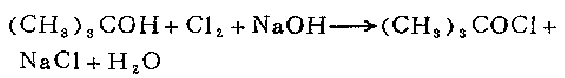 in a 2-liter three-neck flask equipped with a stirrer, gas inlet tube and outlet tube, place 80 grams (2 mol) of sodium hydroxide and 500 ml of water. after the solid is dissolved, add a solution of 74 grams (94 ml, 1 mol) of tert-butanol and about 500 ml of water at 15-20°c and stirring at a uniform speed. first, pass chlorine gas at a rate of 1 liter/minute for 30 minutes, and then continue to pass chlorine gas at a rate of 0.5-0.6 liters/minute for 30 minutes (forward). separate the upper organic layer and wash it several times with 50 ml of 10% sodium carbonate solution until the congo red test paper no longer shows acidity. wash 4 times with equal volume of water, add anhydrous calcium chloride and dry, and isolate 78-107 grams (72-99%) of the liquid product. store in the refrigerator protected from light in the presence of inert gas.