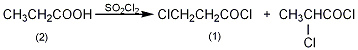 in a reaction bottle equipped with a stirrer and a reflux condenser (the top is connected to a calcium chloride drying tube and connected to an acid gas absorption device), add 59.2g (0.8mol) of propionic acid (2) and sulfuryl chloride 54g, carbon tetrachloride 45ml, stir evenly and then add 0.5g benzoyl peroxide. heat the reflux reaction in the dark for about 1.5 hours until no gas escapes. then add 190g of excess thionyl chloride and reflux for 4 hours. distill under normal pressure to evaporate the solvent, thionyl chloride and propionyl chloride. the residue is fractionated under reduced pressure. collect the 51-54°c/13.3kpa fraction, which is 2-chloropropionyl chloride. collect the 81-84°c/13.3kpa fraction. it is 3-chloropropionyl chloride (1). the two accounted for 45% and 55% respectively, and the total yield was 75%. [1]