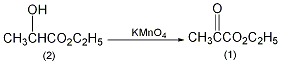 in a reaction bottle equipped with a stirrer, thermometer, and dropping funnel, add 130 ml of saturated magnesium sulfate solution and 500 ml of petroleum ether at 30 to 60°c. ethyl lactate (2) 50g (0.42mol), 20g (0.13mol) potassium dihydrogen phosphate. cool to 15°c in an ice water bath, add 55g potassium permanganate powder (0.35mol) in batches while stirring, pay attention to the addition speed, wait after the reaction of the previous batch is complete, add the next batch and control the reaction temperature at about 15°c. after the reaction is completed, let it stand and separate the layers. separate the organic layer, and extract the lower slurry three times with petroleum ether. combine the organic layers and recover them by distillation after removing petroleum ether, the residue was washed twice with saturated calcium chloride solution, 10 ml each time. distilled under reduced pressure and collected the fraction at 56~57°c/2.67kpa to obtain 25~27g of ethyl pyruvate (1), yield 51 %~54%.[1]