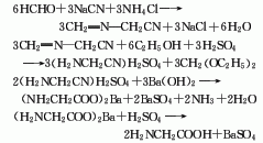 5.add 2.2l ammonia water to 2.1kg urotropine while stirring under cooling to fully dissolve it, and then add dropwise 13.3kg of 75% chloroacetic acid solution and 20kg of 28% ammonia water. control the reaction temperature to 50-60°c, the reaction solution ph = 7-8, incubate it at 72-78°c for 3 hours, suck off the supernatant, and dry the crystallized crude product, then refine and dry it with 75% ethanol, which is the finished product. . the process reaction formula is: