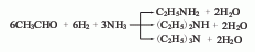 2. acetaldehyde, hydrogen ammonia the chemical method uses acetaldehyde, hydrogen and ammonia as raw materials and nickel as a catalyst to react to produce ethylamine. first, a structural catalyst with nickel as the main catalyst, reduced copper and reduced chromium as the cocatalyst and kaolin as the carrier is loaded into the reactor, and acetaldehyde is introduced into the reactor at an air velocity of 0.03-0.15l·h-1 to allow hydrogen and acetaldehyde to mix. the ratio is 5:1, and the ratio of ammonia and acetaldehyde is 0.4-3:1. the feedstock is vaporized and entered into the reactor at 80°c. the reaction temperature is controlled between 105-200°c. the product is cooled at -5°c and mono-, di- and triethylamine are separated. since monoethylamine is formed faster than diethylamine and triethylamine, it is easier to obtain a large amount of ethylamine. when the main product is required to be di- and triethylamine, the generated monoethylamine needs to be recycled into the reaction system for reaction.