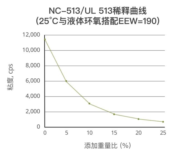 ultra lite 513 series is composed of monofunctional epoxy diluents that can effectively reduce viscosity and are excellent alternatives to traditional glycidyl ethers. nc-513 is the standard model. ultra lite 513 is a purer, lower viscosity, very light-colored version of nc-513. lite 513e is a very low total chlorine version of nc-513 suitable for electronic applications.